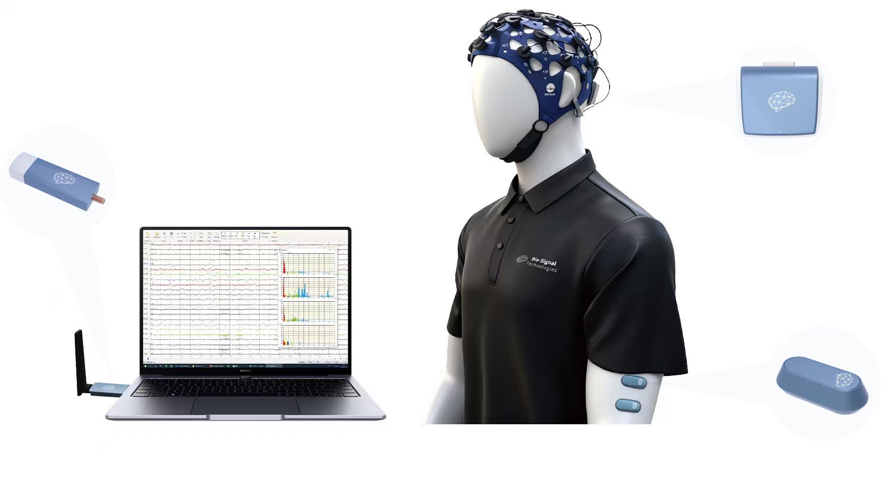 数据采集与分析:Poseidon Air直观而强大的软件平台可以让使用者对数据进行记录,储存,处理,可视化和分析,包括功率谱,在线阻抗测量等分析。用户可以轻松配置单极或双极Montages,或者查看alpha,beta,theta,delta和gamma波并实时显示脑电功率谱。可以将数据储存为BDF格式,并导出为EDF,CSV或二进制文件,以便导入第三方应用程序,如MATLAB,EEGLAB,BCILAB,OpenVibe,FieldTrip,SciPy和EDF Browser。提供MATLAB和C / C++ SDK用于开发实时EEG测量和分析应用程序。